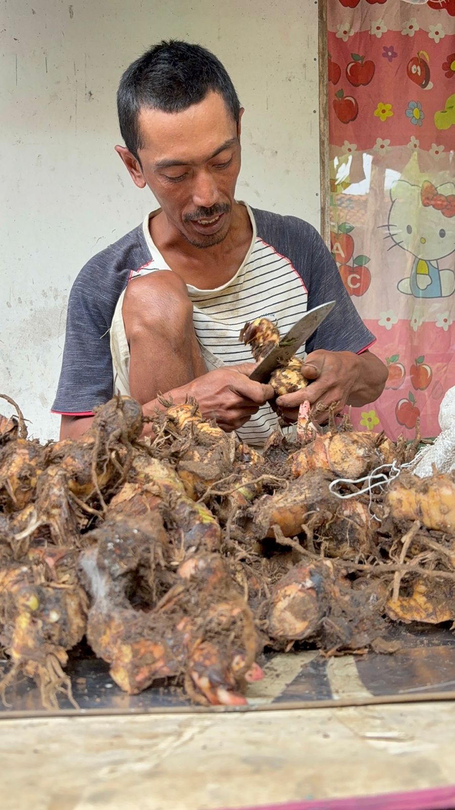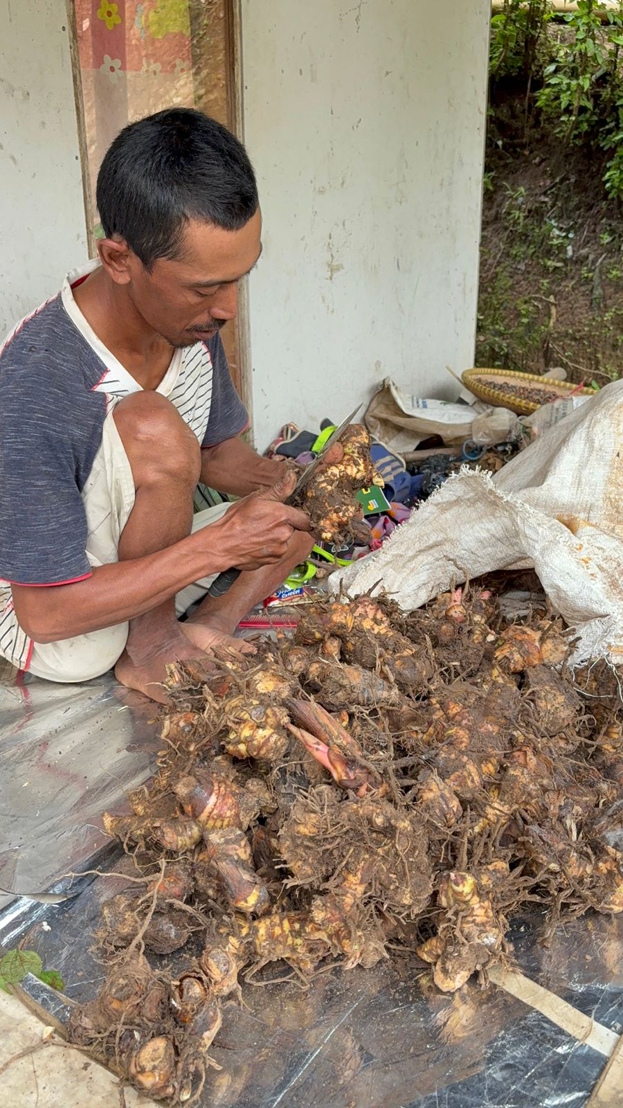 Anak abah Karja setiap harinya membersihkan rempah yang akan dijual ke pasar-pasar,tidak ada gengsi atau malu yang penting jualan nya cepat laku,untuk pengobatan dan kebutuhan sehari hari.