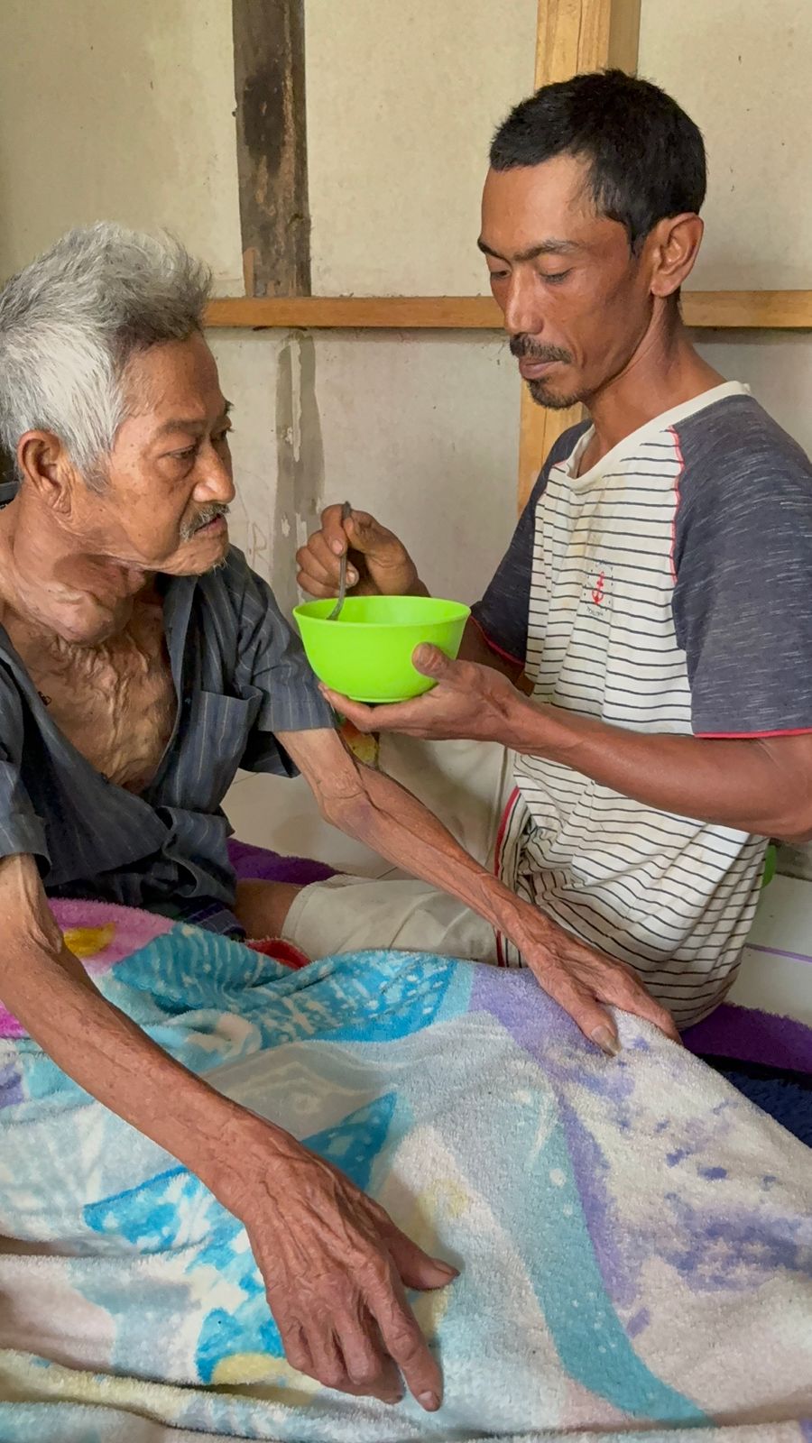 Abah Karja menderita tumor besar di lehernya. Bahkan saat ini tumor itu bertambah hingga membuat Abah sulit bernafas.