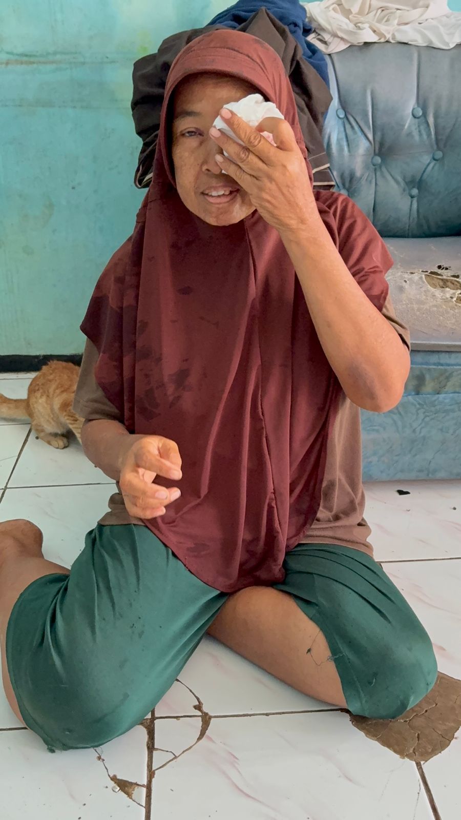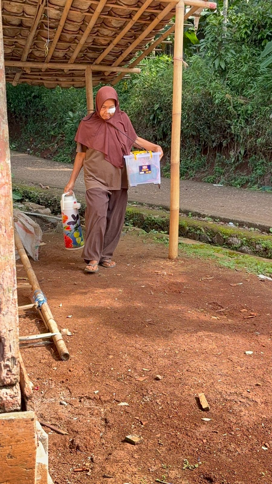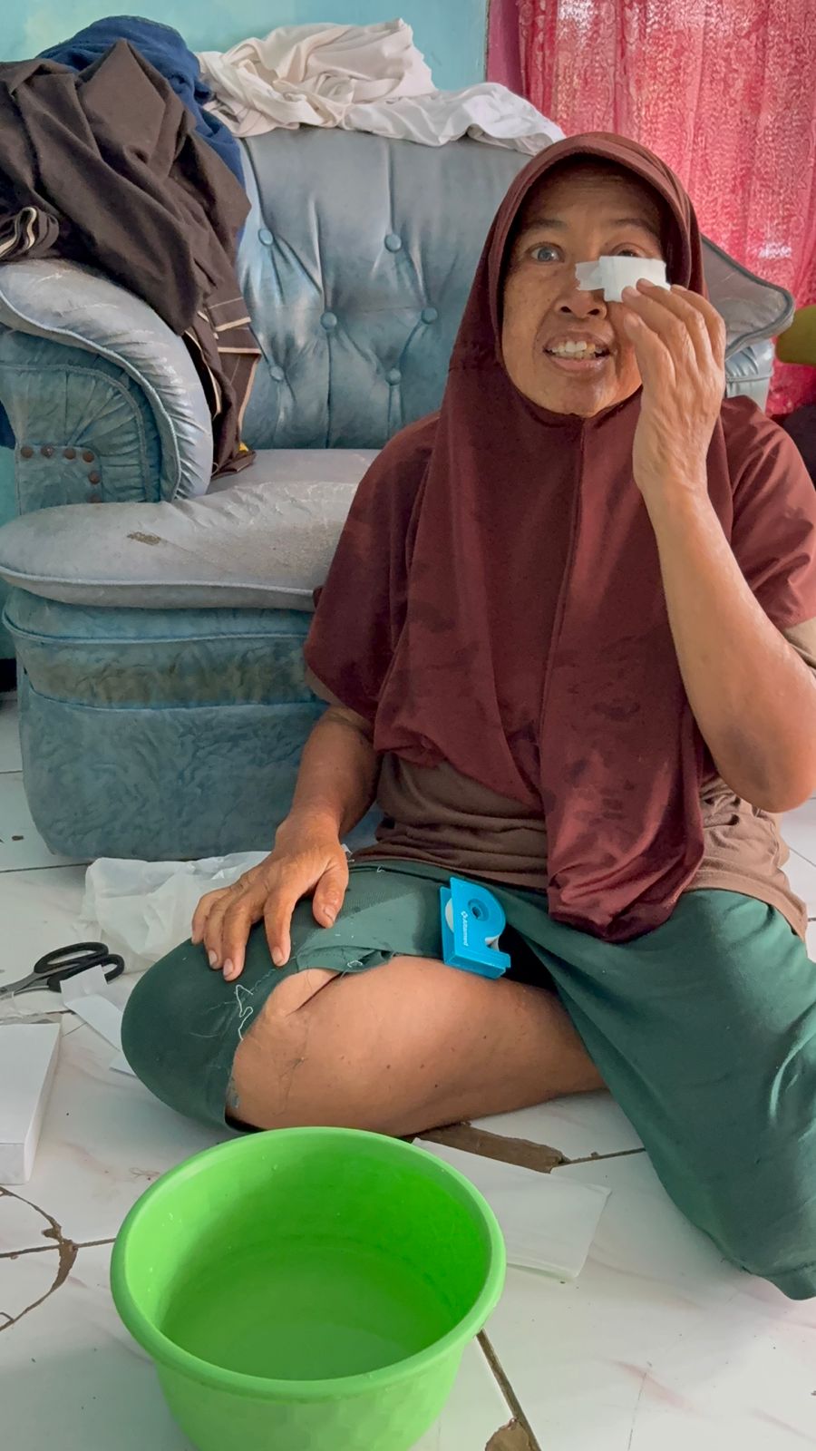 Bu Mimin,setiap hari harus menahan sakit,perih karena luka pada mata nya yang semakin terbuka lebar,juga terus mengeluarkan banyak darah,Akibatnya jika tidak segera diobati,akan mengancam nyawa bu Mimin.