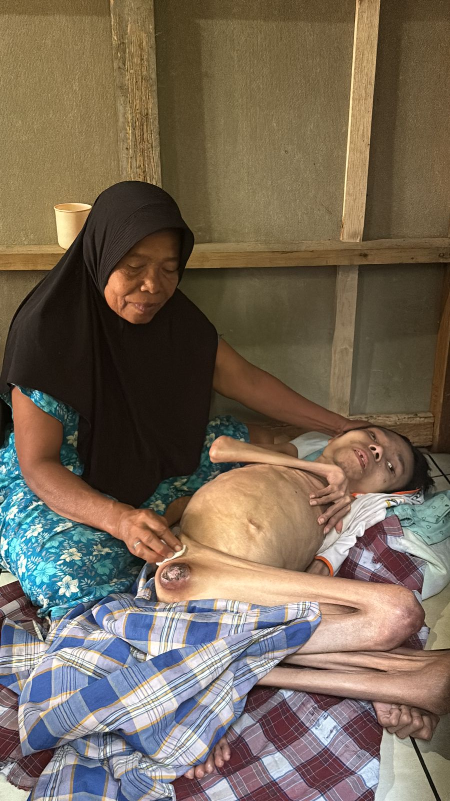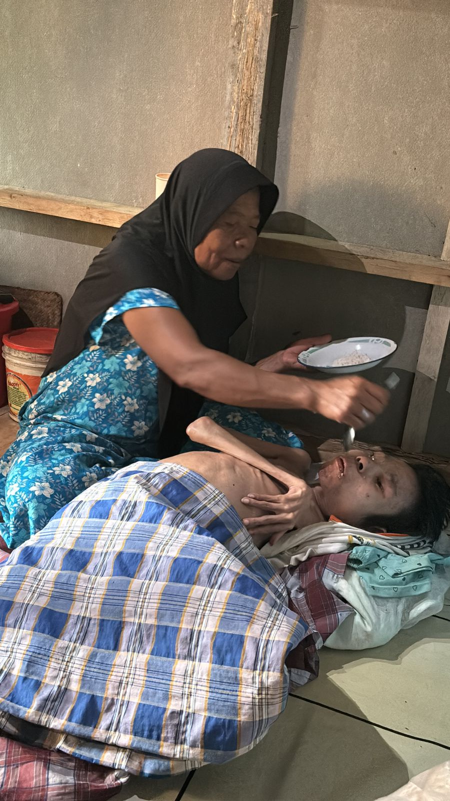 Dalam kondisi seperti ini sang ibu tidak bisa membawanya berobat,jangankan untuk berobat untuk makan saja kesulitan. Upah dari jualan sapu dan merakit sapu hanya diupah 300 rupiah,bagaimana mau mengumpulkan uang untuk biaya ke rumah sakit yang mencapai ratusan juta rupiah,?