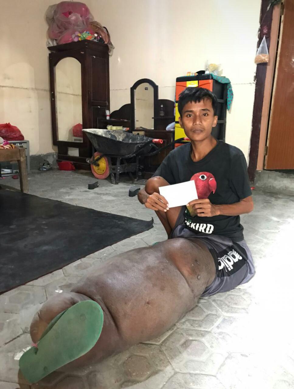 Namanya Husnul Basuni, alamat di Dusun Sambong Rt.01/Rw.01, Desa Turigede, Kec. Kepohbaru, Kab. Bojonegoro. Sekarang berusia 27 Tahun, Sejak umur 4 tahun husnul menderita sakit kaki gajah, pada saat itu keluar benjolan kecil yang kelamaan membesar. Bukan tidak pernah berobat, bahakan dulu pernah berobat sebanyak 3 kali. Tepatnya di RSU Dr. Soetomo Surabaya, pada saat itu diberi obat kapsul besar berwarna merah dan benjolannya mengecil.