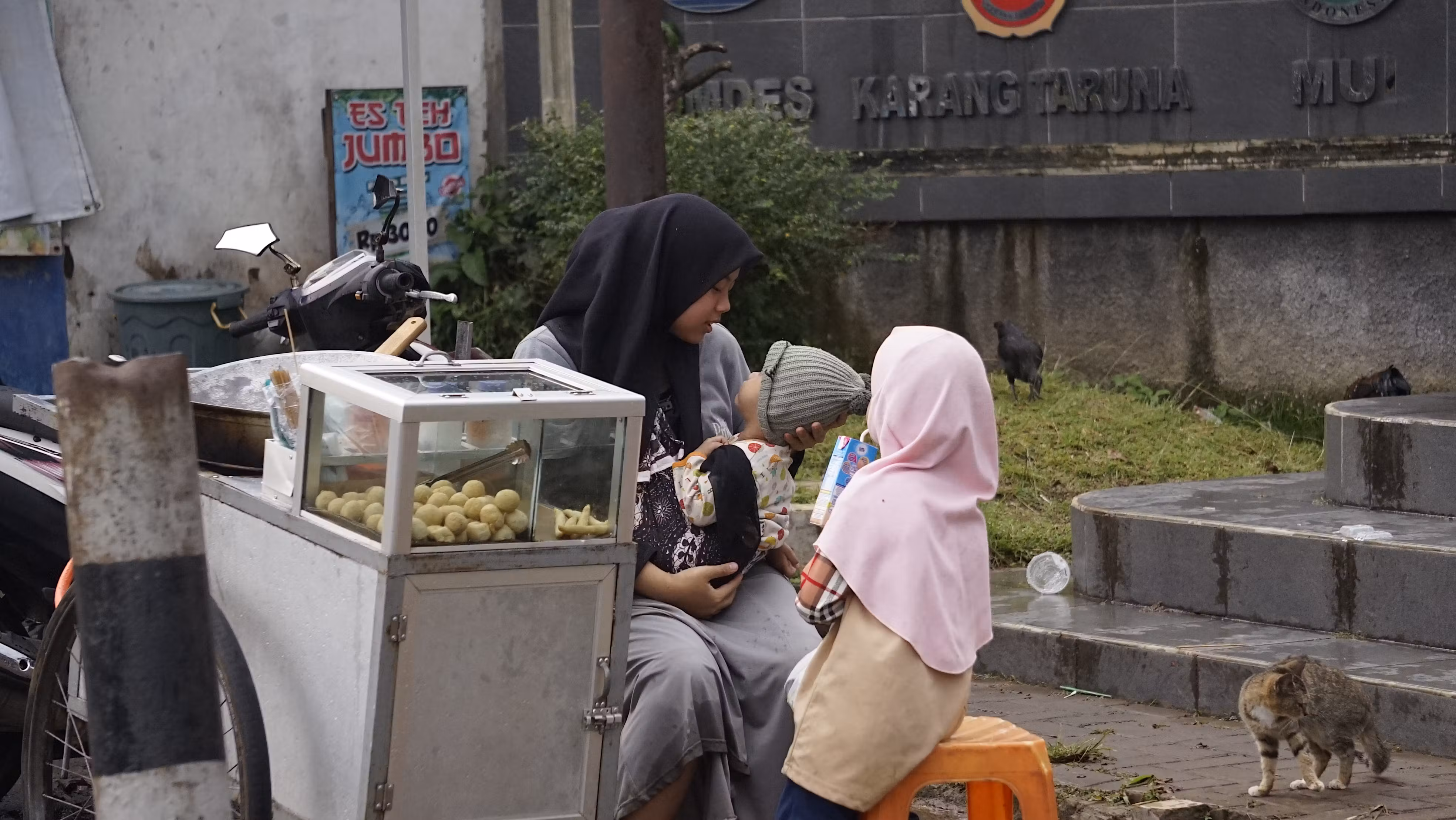 Setiap pagi, Susi mendorong gerobak tahu bulat pinjaman milik tetangga. Dengan tangan kecilnya, ia menggandeng adiknya Dewi (5 tahun), sementara di punggungnya tergantung tubuh mungil Yuli (3 tahun). “Kalau jualan habis, saya dikasih 25 ribu. Tapi kalau masih sisa, cuma 10 ribu. Kadang tahunya saya bawa pulang buat dimakan sama adik-adik,” ucapnya lirih.