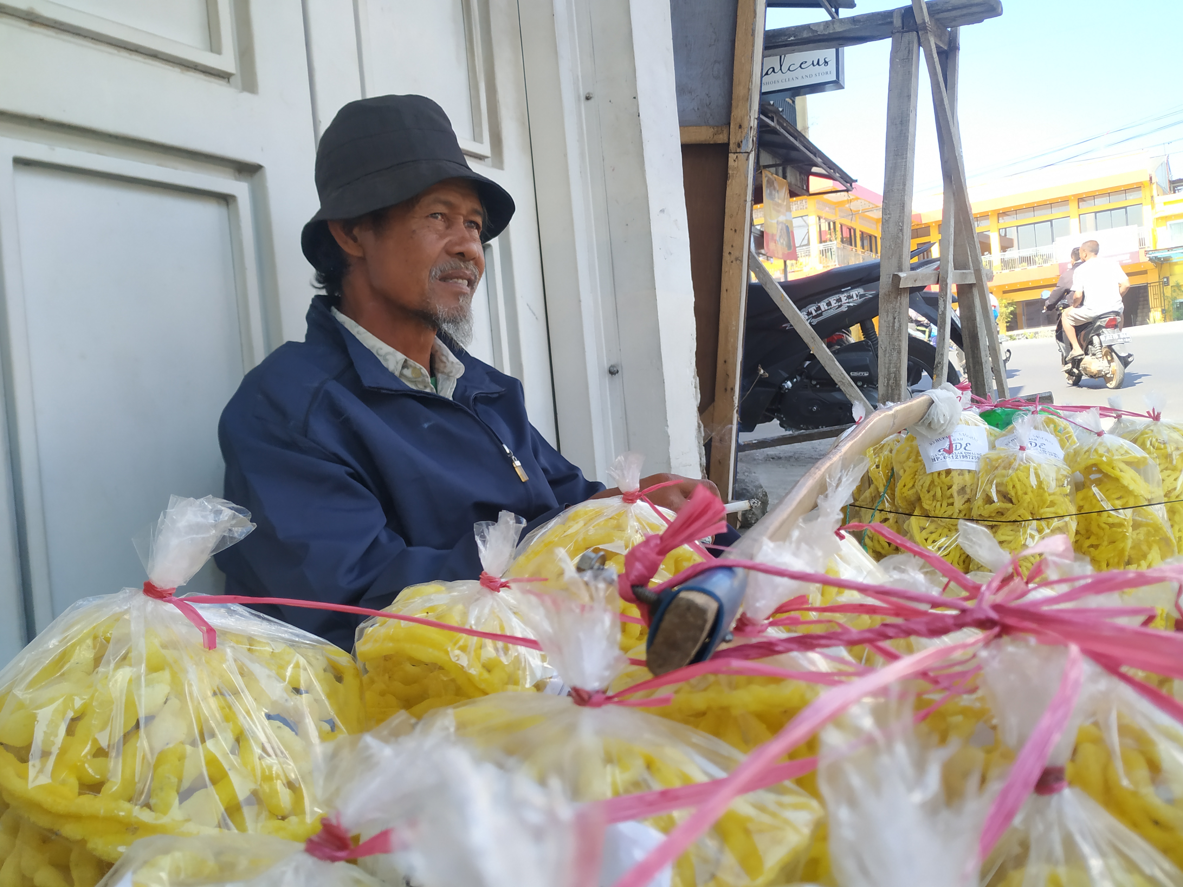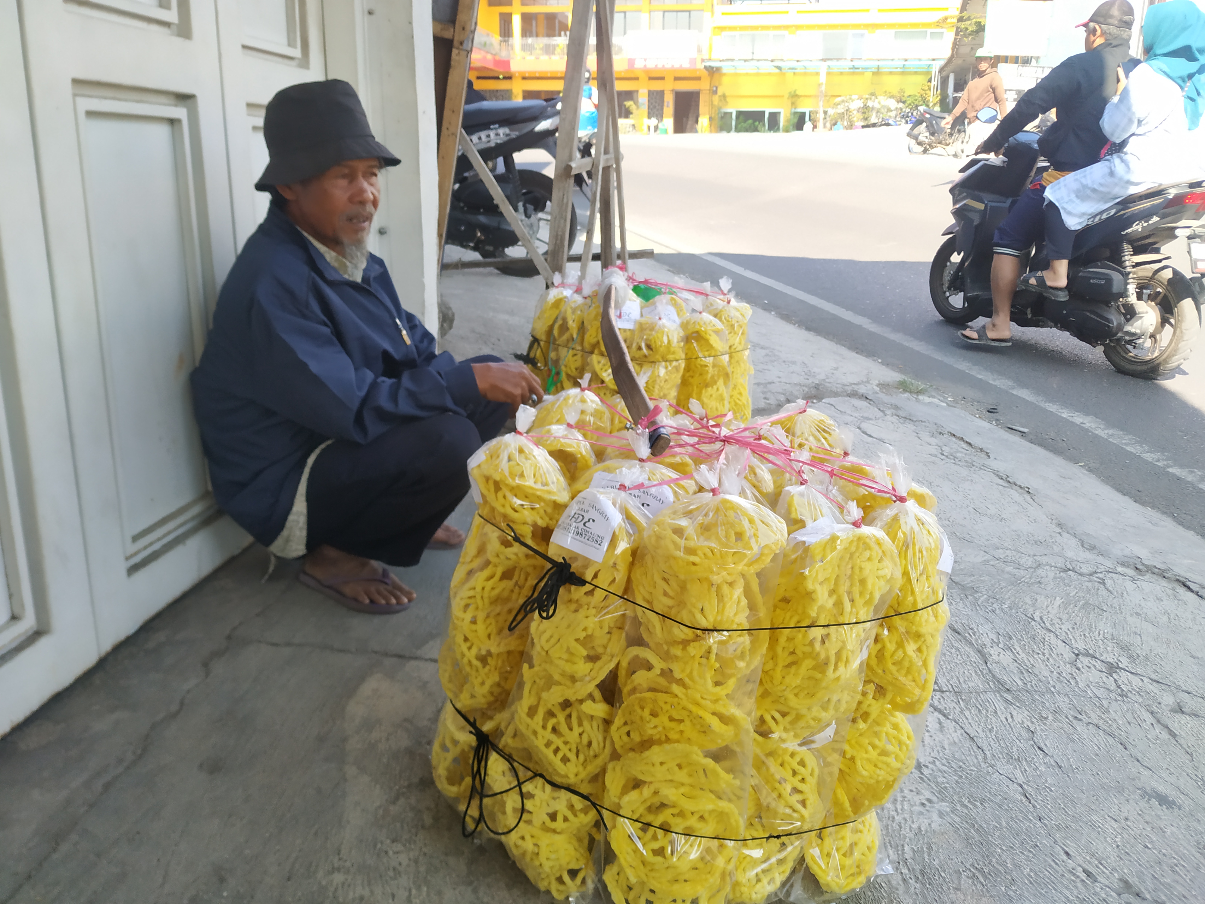 Demi anak sekolah dan kebutuhan hidupnya abah Dede (58) berjuang mencari nafkah dengan berjualan kerupuk keliling.