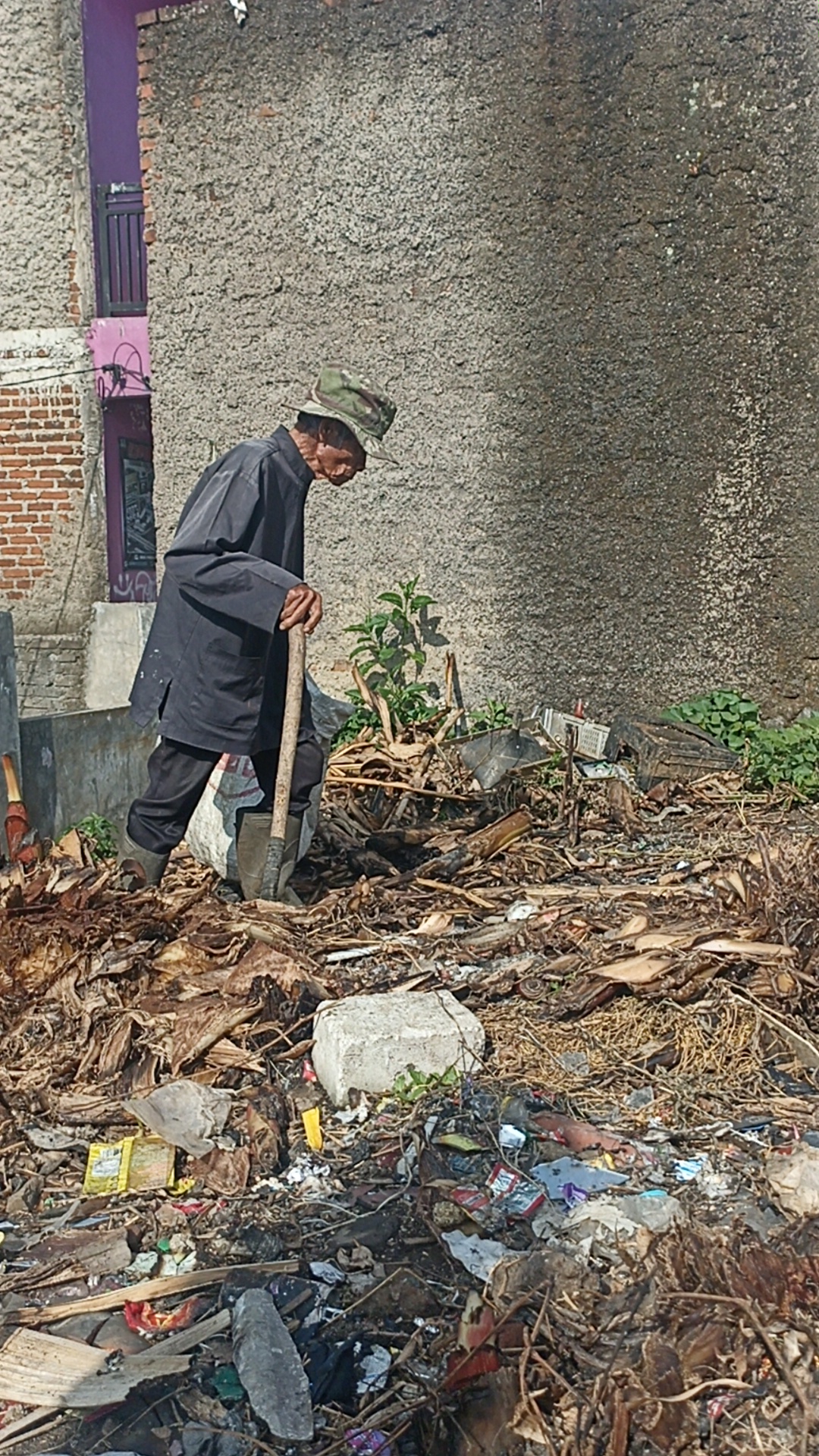 Dengan bermodalkan kail dan karung, setiap hari Abah Karman mencari cup plastik dan paku untuk dijual. Penghasilan dari hasil jerih payahnya ini digunakan untuk makan sehari-hari.