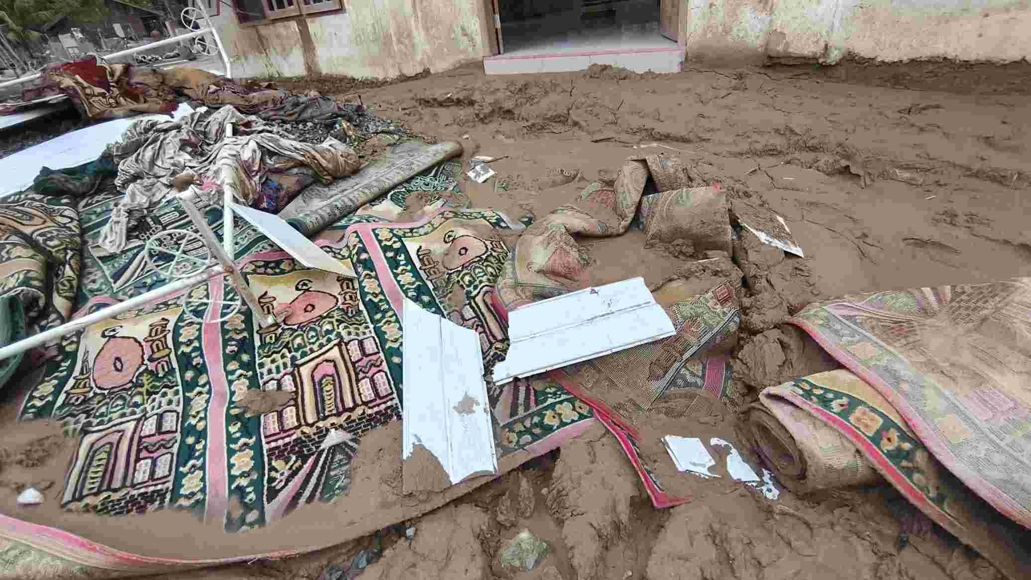 Di tengah kondisi pengungsian yang serba terbatas, para penyintas tetap berusaha menjalankan ibadah sebagaimana mestinya. Namun keterbatasan perlengkapan menjadi tantangan tersendiri. Alat sholat yang biasa digunakan telah rusak atau hilang akibat banjir dan lumpur, sehingga ibadah harus dilakukan dengan seadanya.