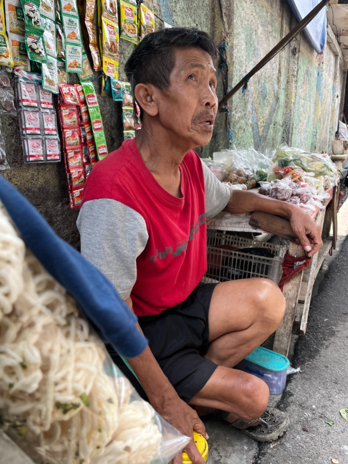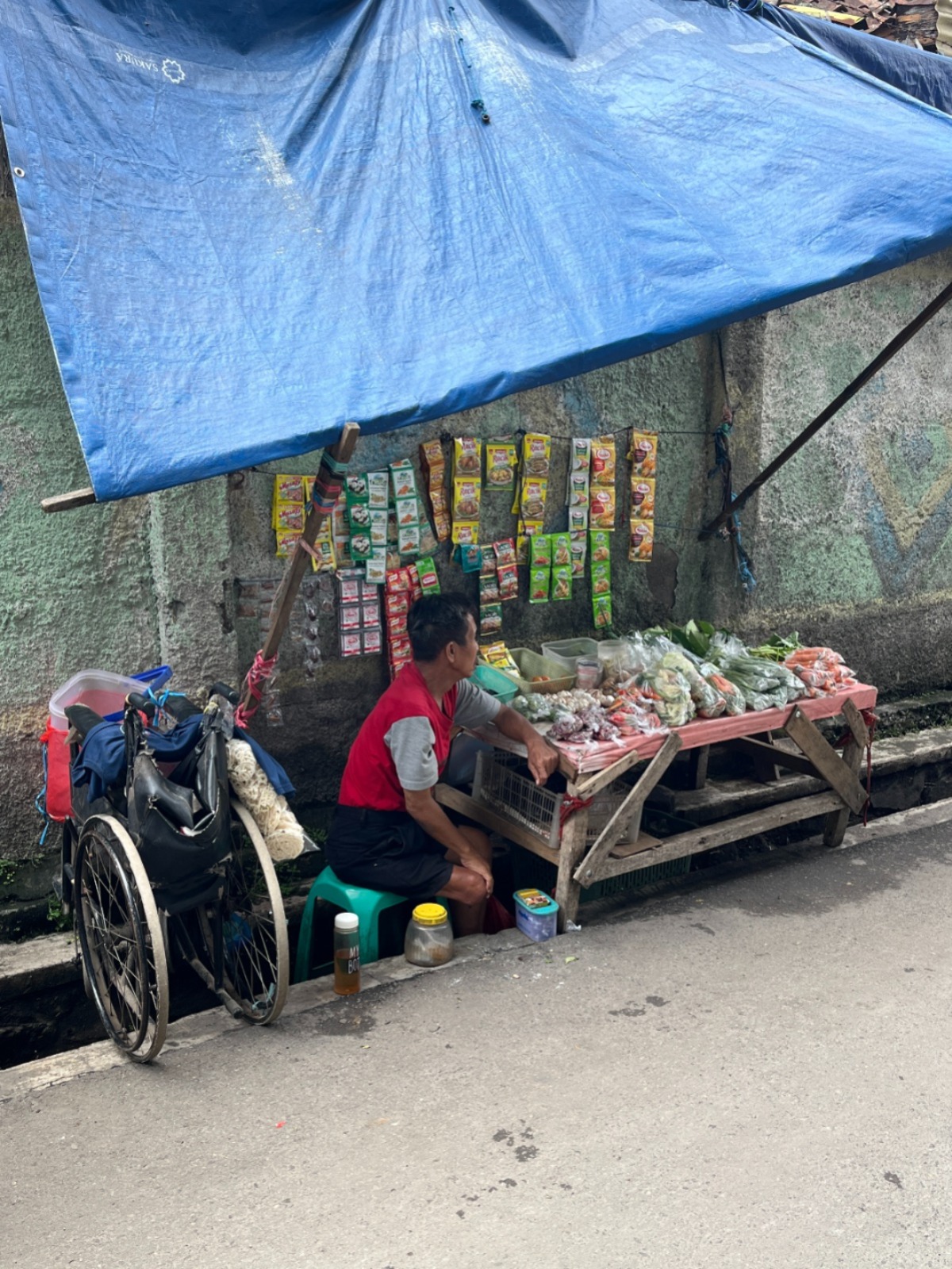 Abah Edi (61) tetap gigih meskipun kini beliau hanya memiliki satu kaki saja. Berjuang menafkahi keluarganya dengan berjualan sayur. Karena kondisi fisiknya juga Abah Edi tidak bisa lagi bekerja secara maksimal.