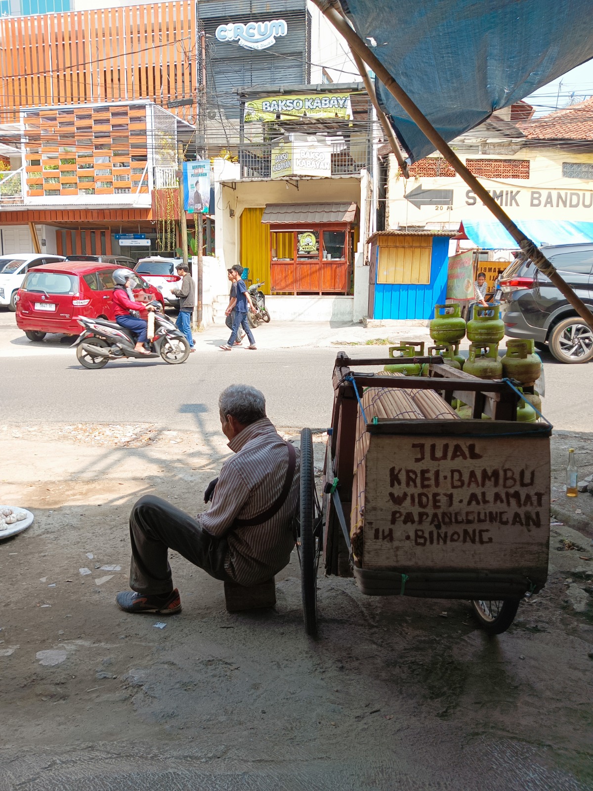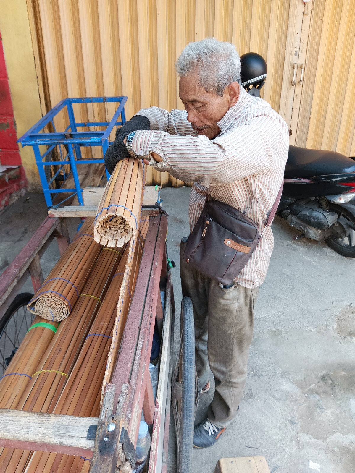 Tiap Hari melawan teriknya cahaya matahari sambil mendorong gerobak usang, itulah yang dilakukan oleh lansia berumur 79 tahun bernama Abah Ibrahim. Dengan tubuhnya sudah renta, Abah tetap melaksanakan kewajibannya mencari nafkah untuk istrinya dengan berjualan Krei (Tirai) Bambu.