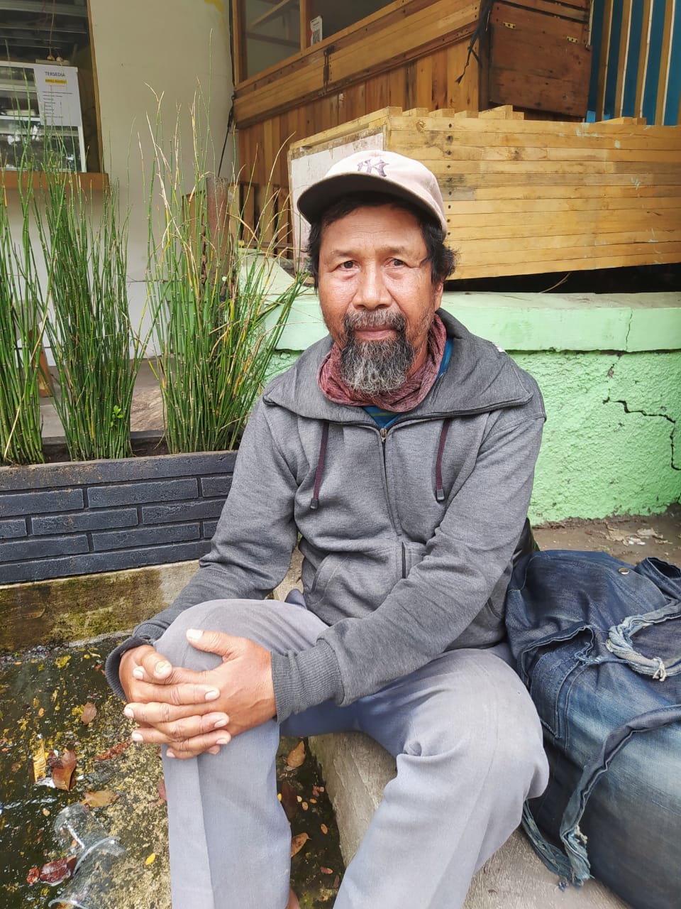 Beliau berjualan sendal keliling sudah puluhan tahun, dengan harus menggendong tas yang berat sejauh puluhan kilometer .