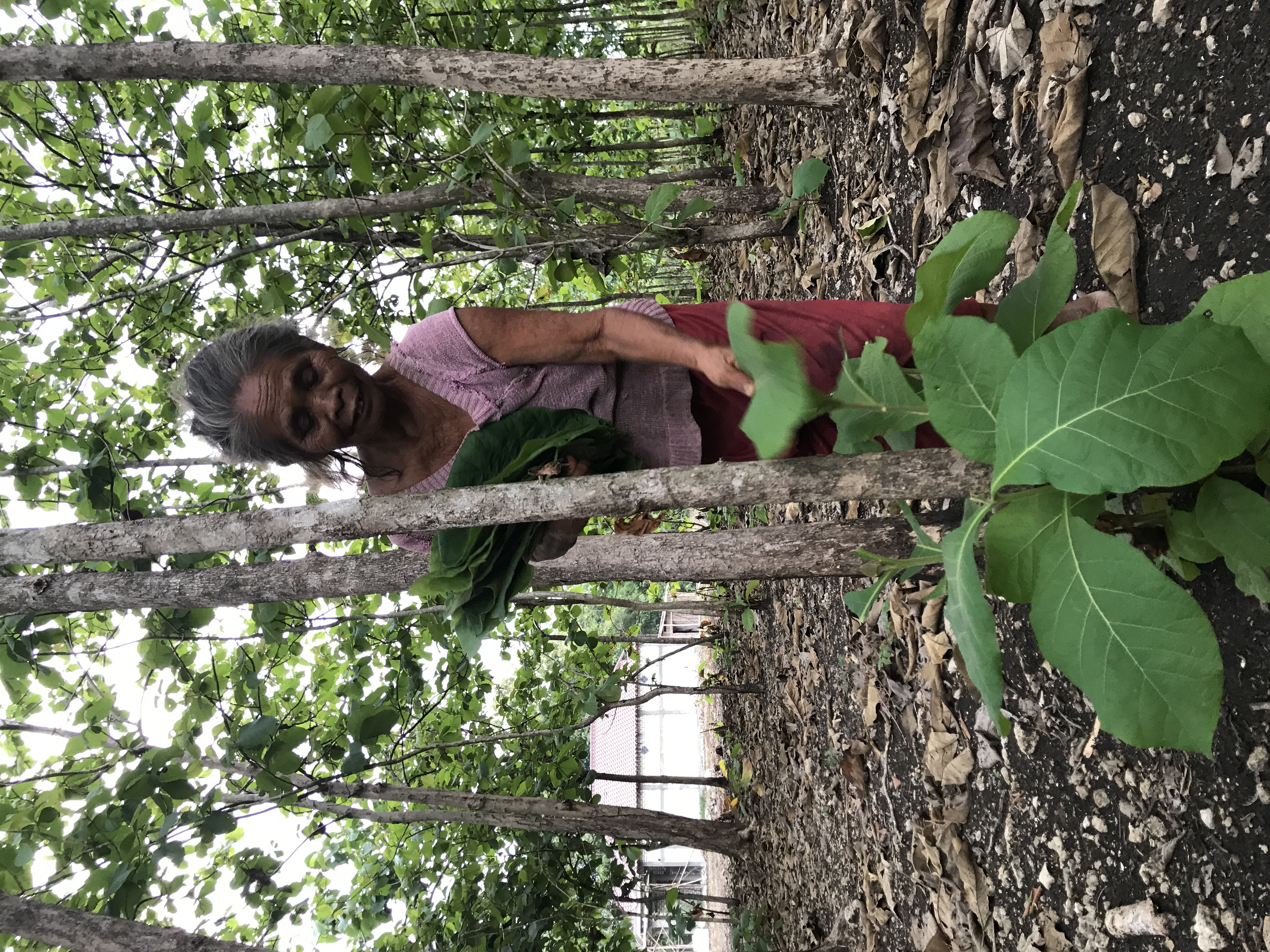 Setiap 2 hari sekali beliau harus berjalan 8 KM sambil menggendong daun jati yang akan di jual, biasanya jualannya di pasar sampai dhuhur, beliau jual daun jati per gulung, 1 gulung isi 25 daun jati yang besar, dan 1 gulung isi 35 daun jati yang kecil, 1 gulung daun jati di jual dengan harga 1.500.