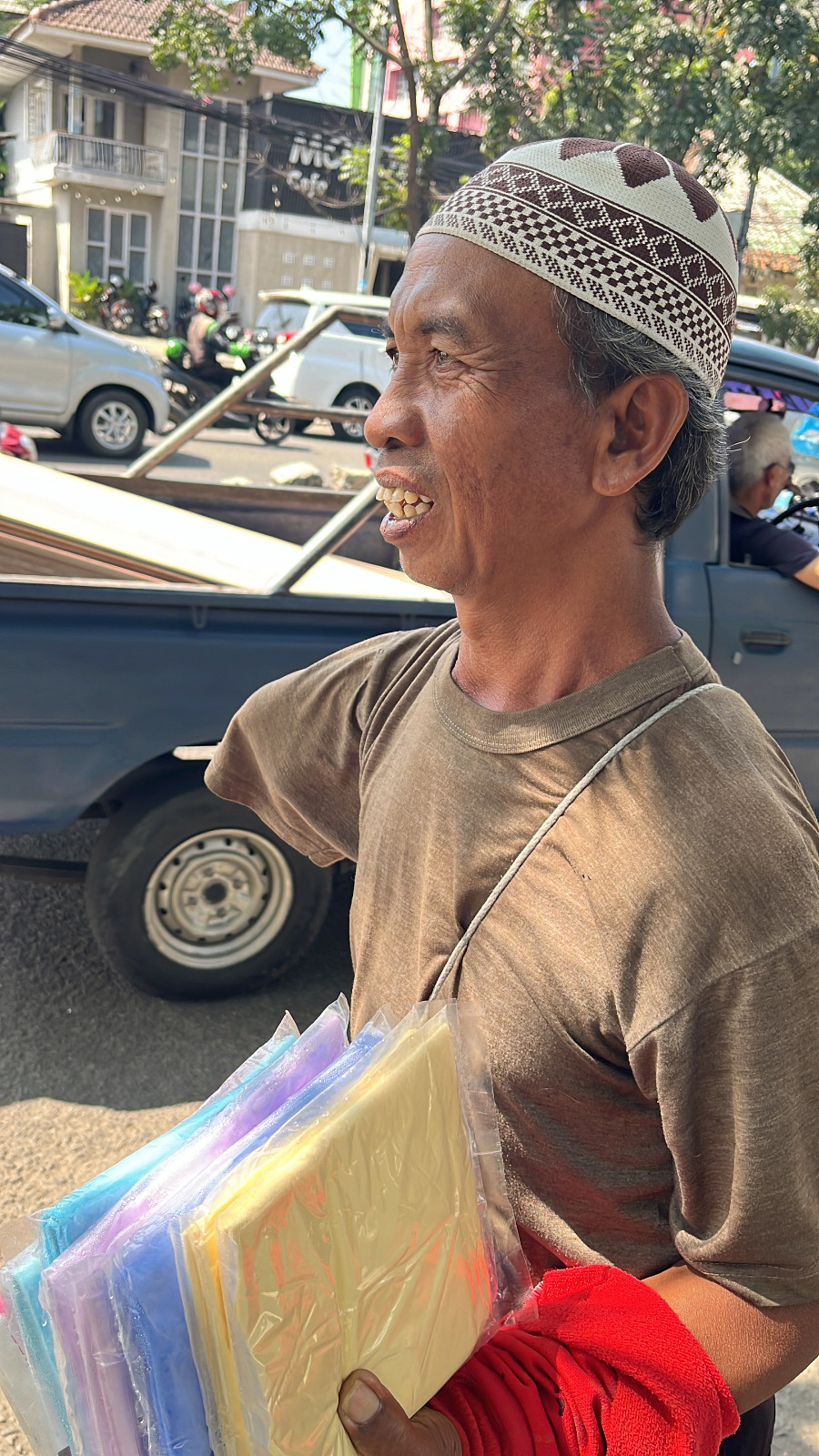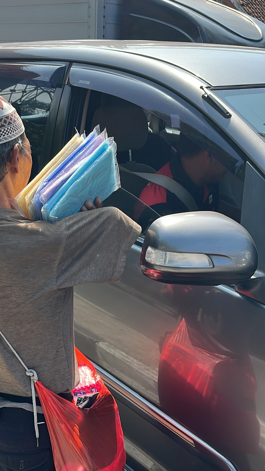 Di tengah segala keterbatasan itu, Mbah tetap berjuang demi istri dan anaknya yang masih bersekolah. Mbah berjualan tissue dan kanebo keliling. Mbah hanya menerima upah harian sebesar 10rb saja. Bahkan tak jarang Mbah tidak mendapatkan sepeserpun karena dagangannya tidak ada yang membeli. Jumlah itu tentu jauh dari cukup untuk memenuhi kebutuhan keluarga kecilnya