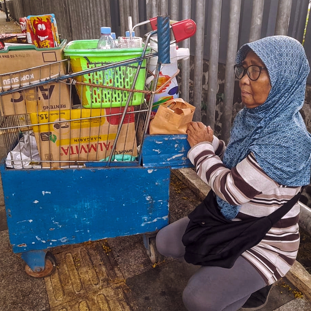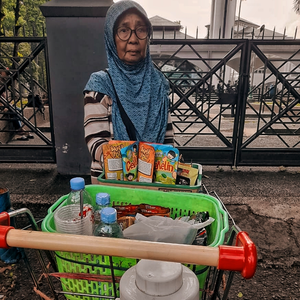 Namanya Mak Neni Kusmiati atau lebih dikenal dengan Mak Ade. Salah satu lansia yang hari ini sedang berjuang dengan menjajaka kopi keliling.