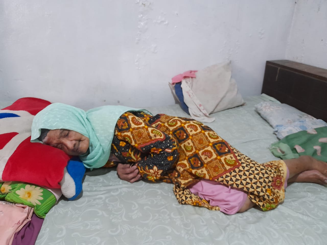 Sambil meringkuk mak Tati terus memegang perutnya yang perih karena menahan lapar. Adakalanya hanya air putih untuk mengganjal perutnya pada hari itu. Tubuh rentanya pun bergetar dengan mata berkaca-kaca penuh harap.