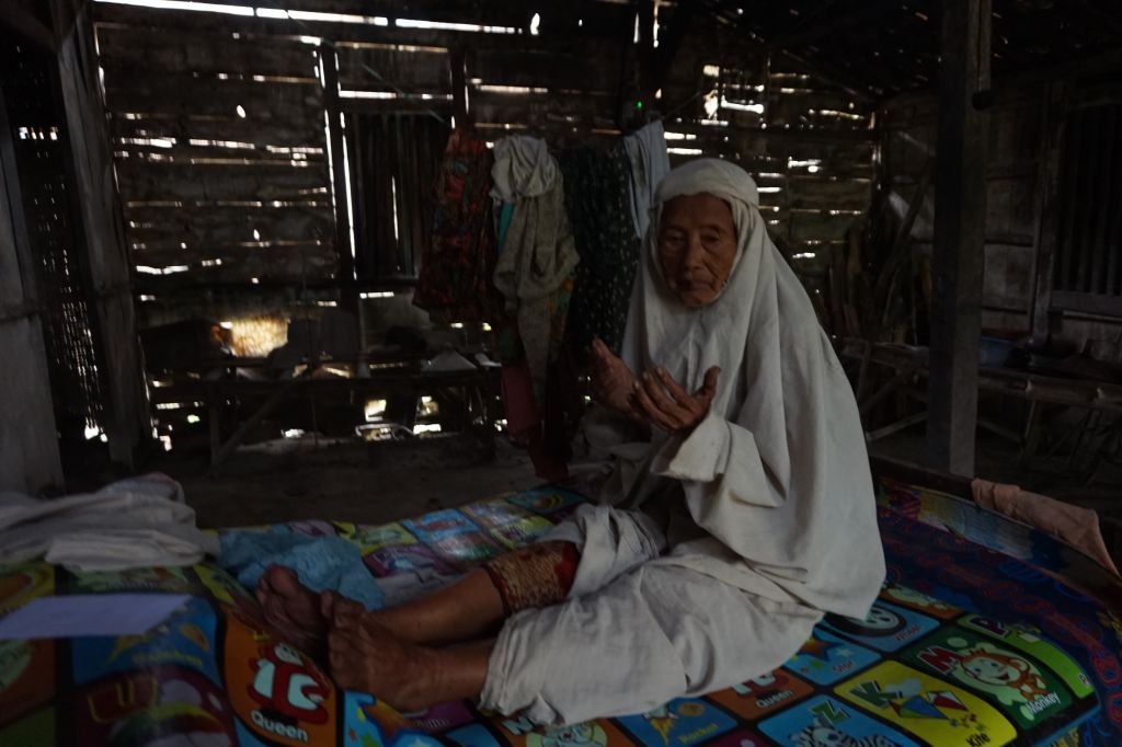 Foto Mbah Karsih yang kesulitan sujud karena kondisi kakinya