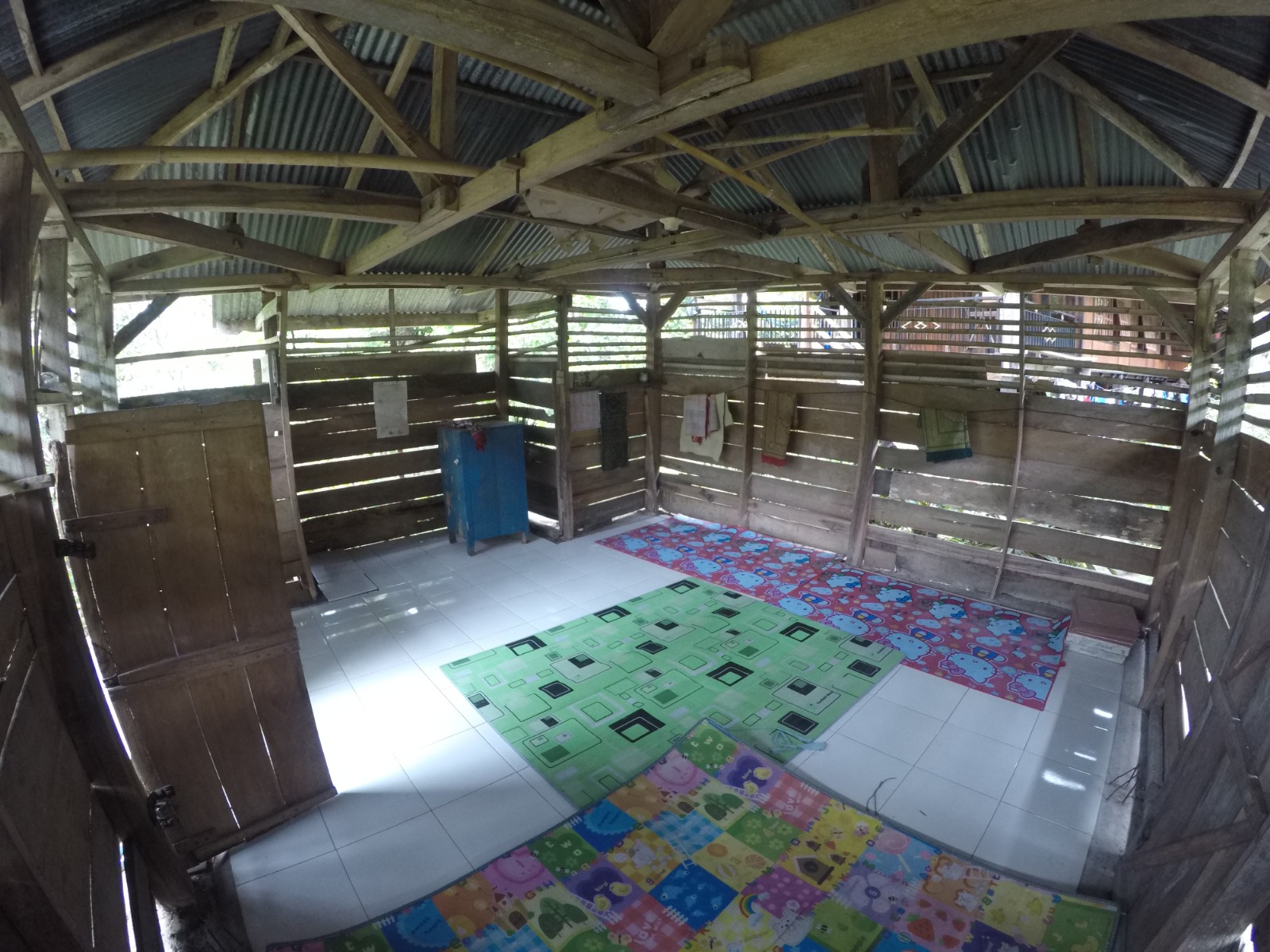 Seperti kenyataannya, masjid ini memiliki luas bangunan 5x5 meter, material utamanya hanya terbuat dari kayu dan bambu sederhana, atapnya pun terbuat dari seng seadanya. Setiap kali hujan turun, airnya masuk melalui berbagai celah dan membasahi setiap sudut masjid.