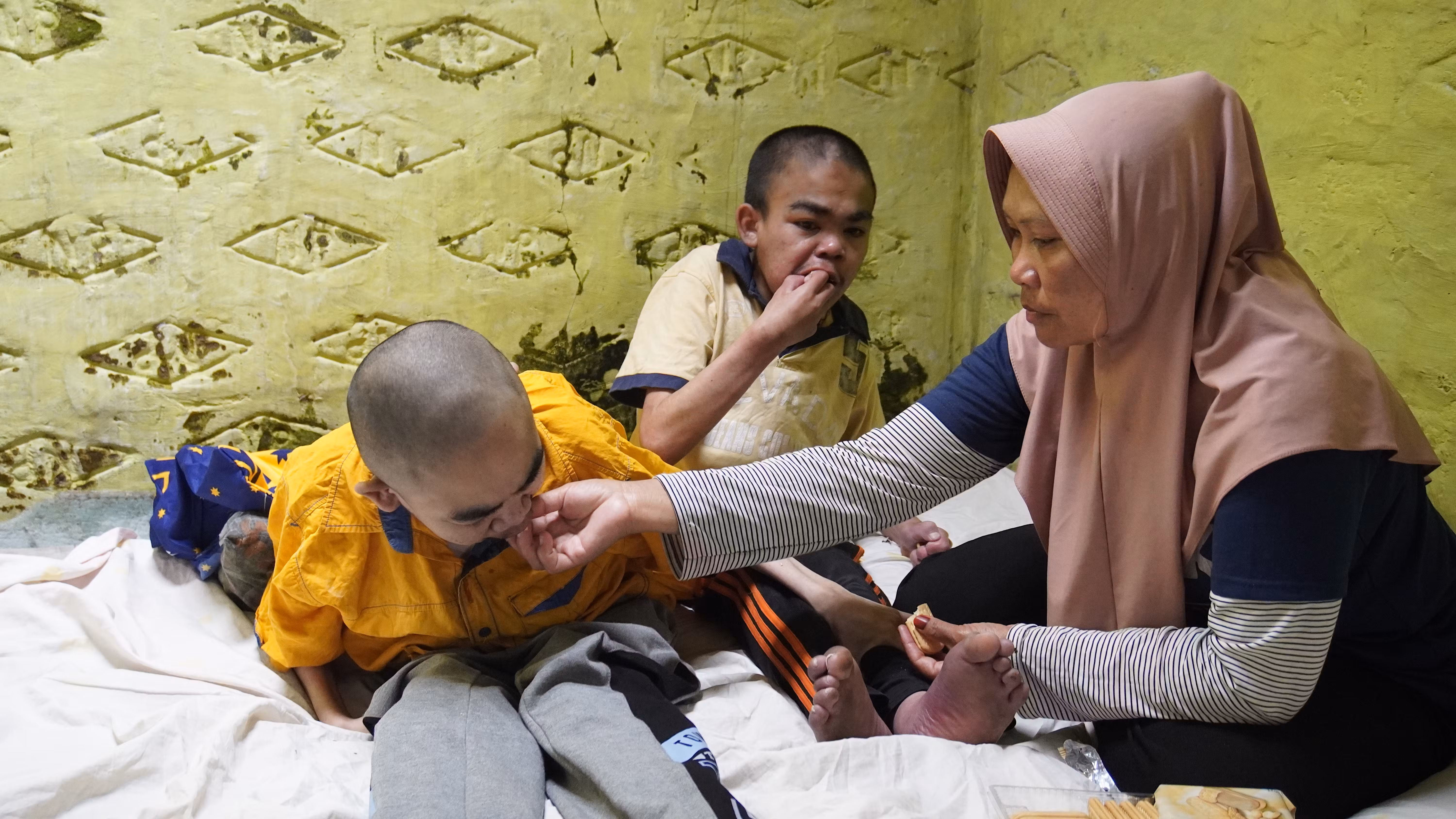 Kedua anaknya tidak bisa makan, minum, atau bergerak tanpa bantuan. Mereka sepenuhnya bergantung pada tangan sang ibu—dari pagi hingga malam, dari hari ke hari, selama puluhan tahun.