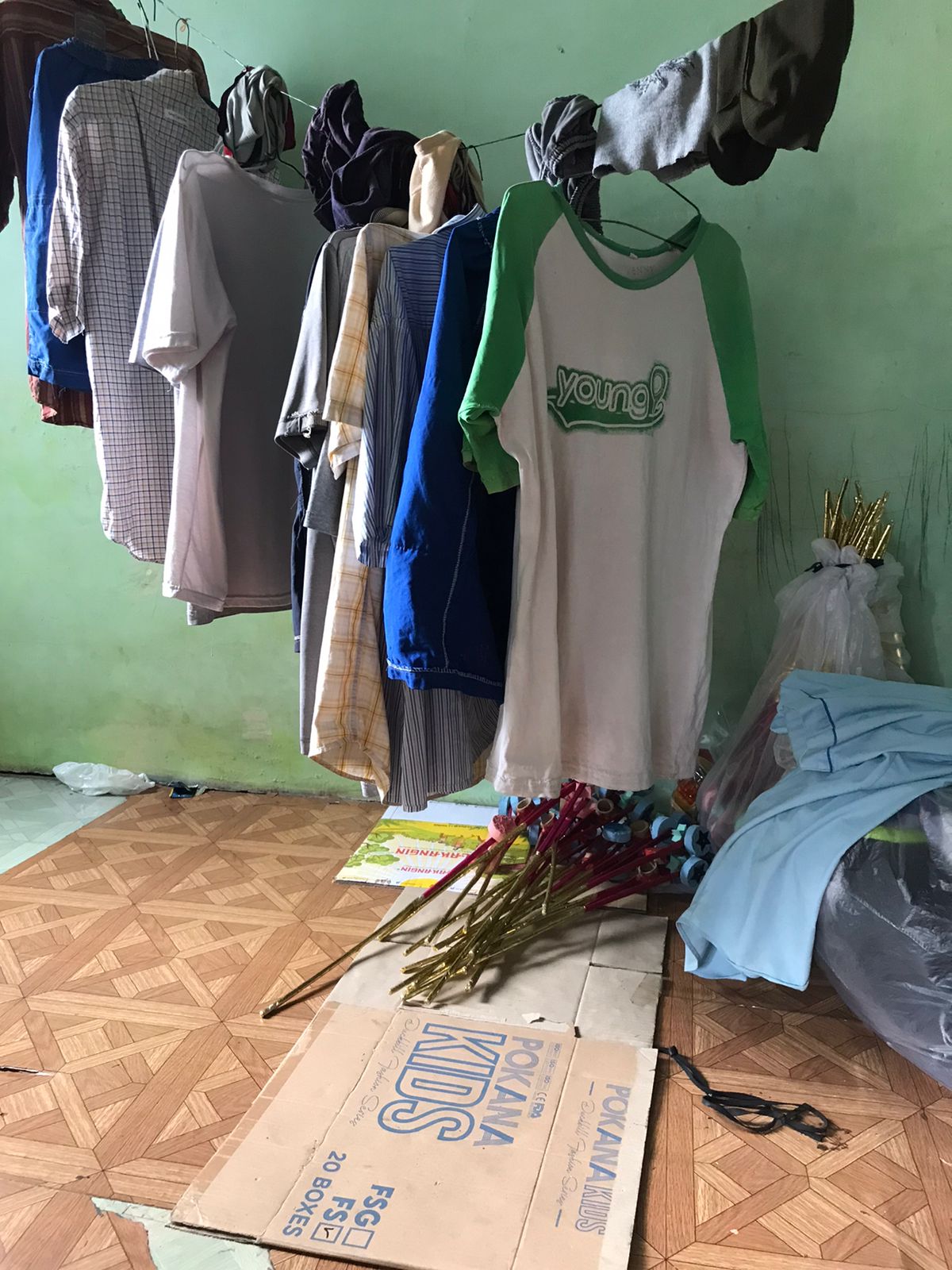 Tinggal di sebuah ruangan kosong tanpa beralaskan karpet atau kasur, abah Sukron hanya bisa beristirahat di atas kardus setelah lelah berkeliling menjual mainannya. Tubuhnya yang sudah mulai menua harus tidur di atas kardus bekas dan bantal bekas tanpa sebuah selimut yang menyertainya.