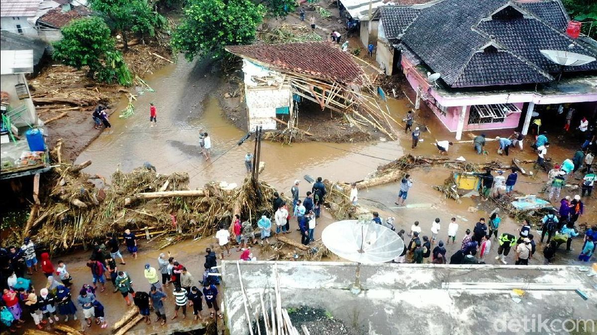 Selain banjir, tanah longsor juga terjadi di Prefektur Sukabumi.