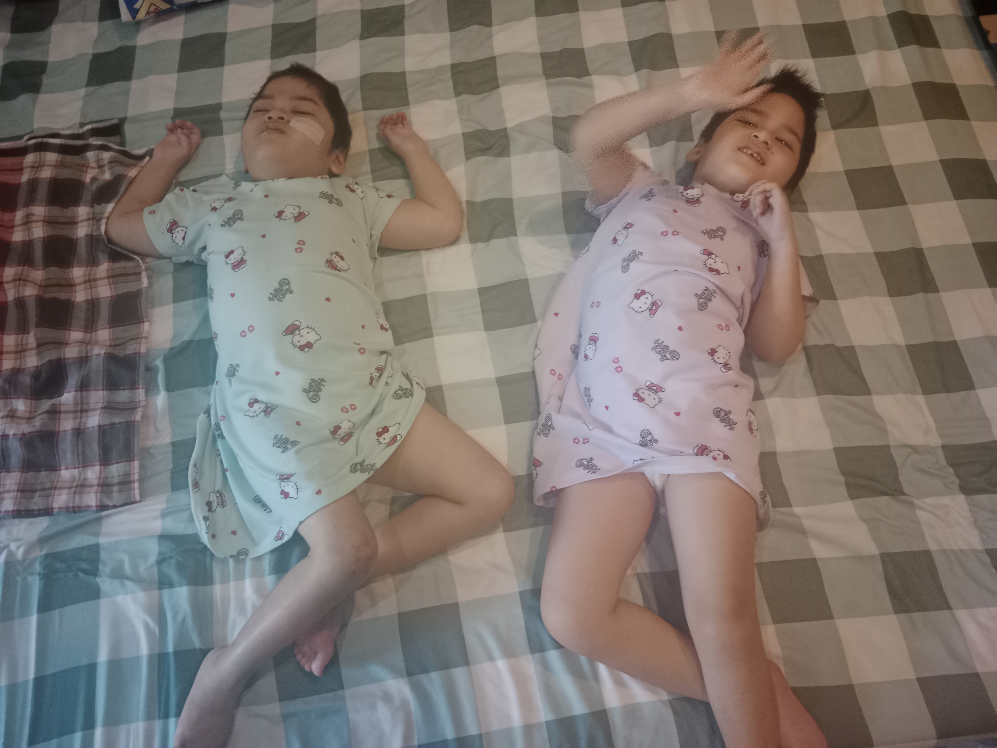 Setiap hari, Gemmela dan Gemmeli lebih banyak berbaring di kasur, kadang-kadang digendong orang tua mereka.