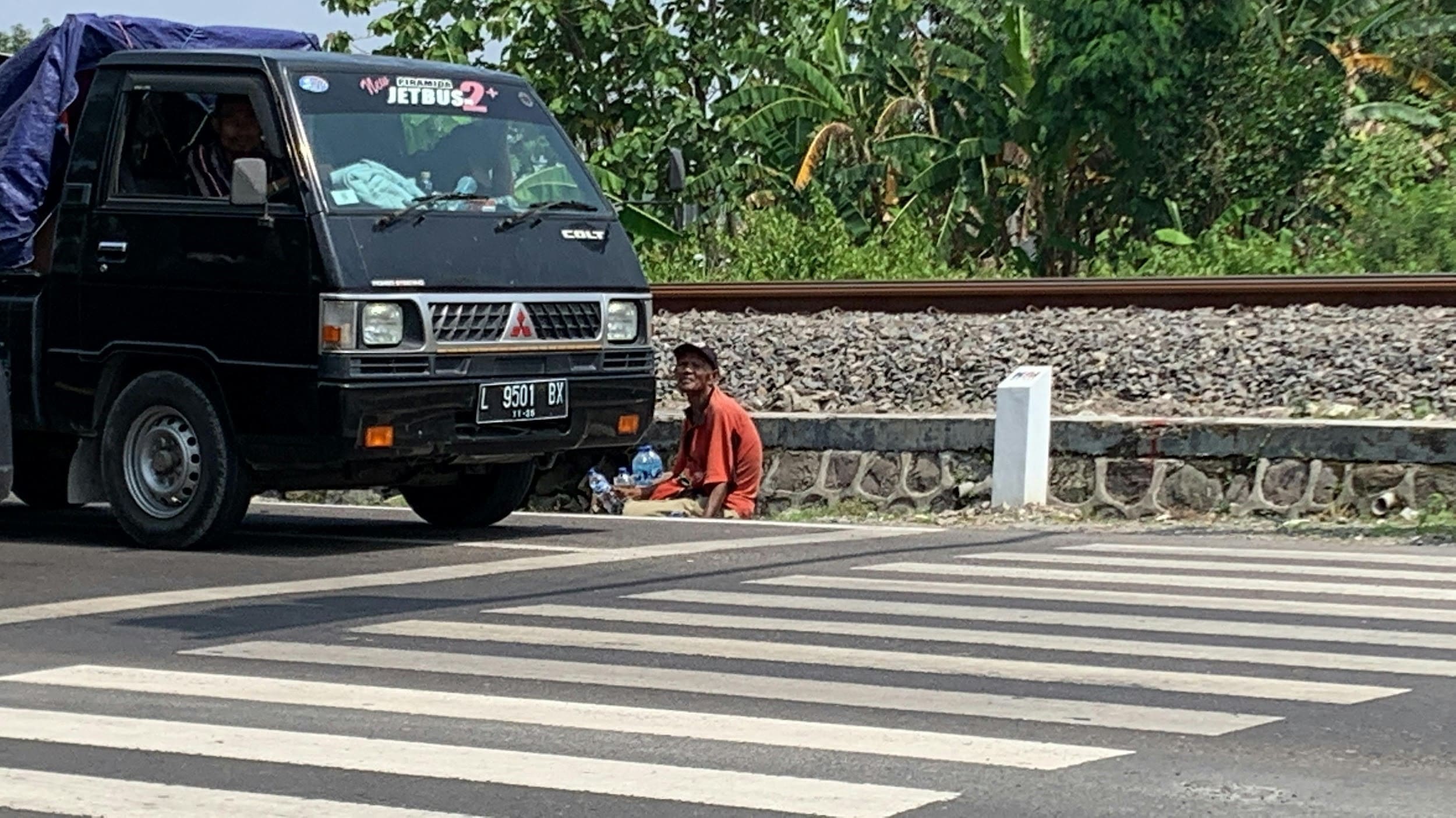 Lampu merah. Itulah tempat mbah Reso (69 tahun) mencari nafkah sehari-hari. Pagi sampai hampir malam, ia terus mengelilingi daerah lampu merah sembari menjajakan beberapa botol air mineral.