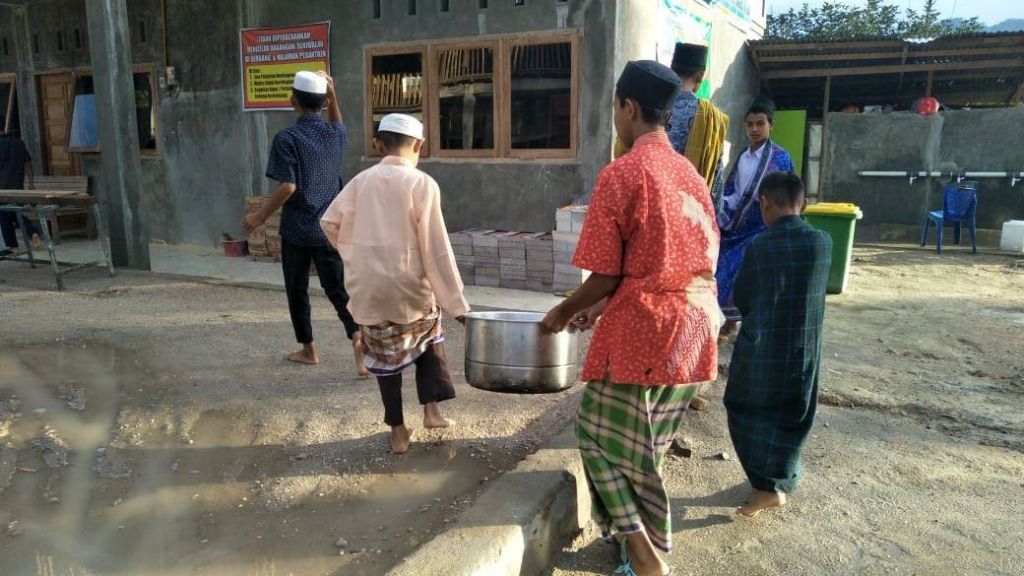 Anak-anak yatim antusias membantu proses pembagian makanan