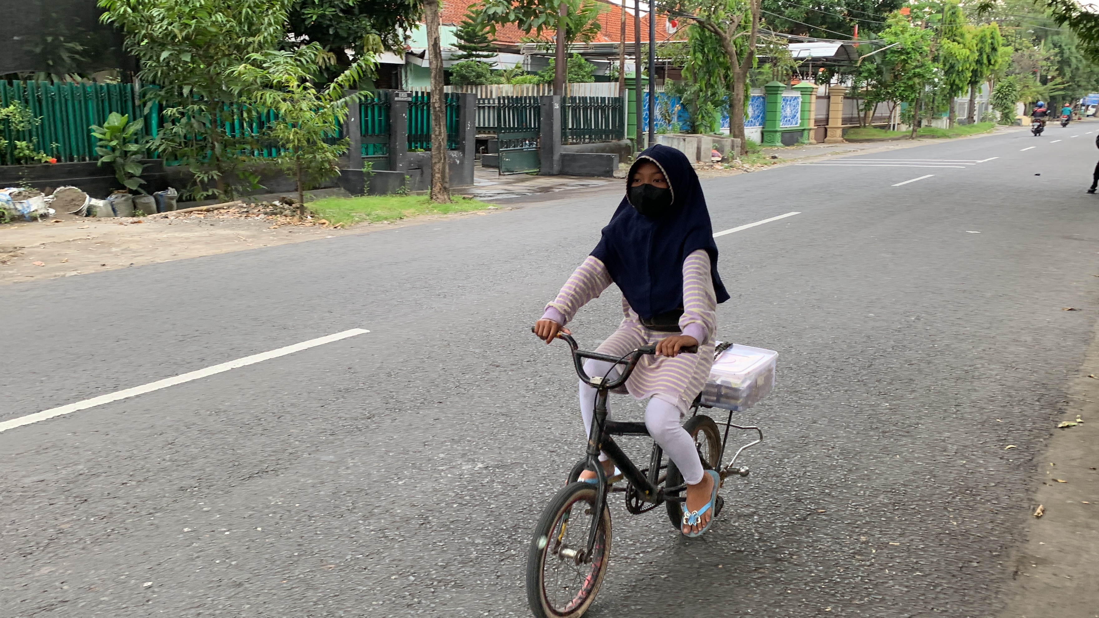 Kue seharga dua ribu itu adalah harapan Aini untuk kesembuhan ibunya. Setiap hari, kaki kecilnya berkeliling mengayuh sepeda sejauh 5-10 Km untuk menjajakan kue jualannya.